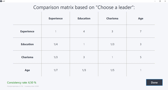- View the results of the AHP algorithm on the project page.